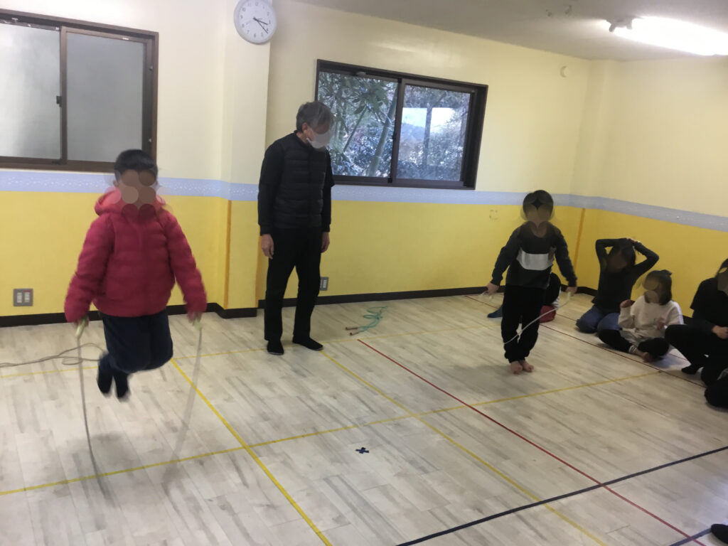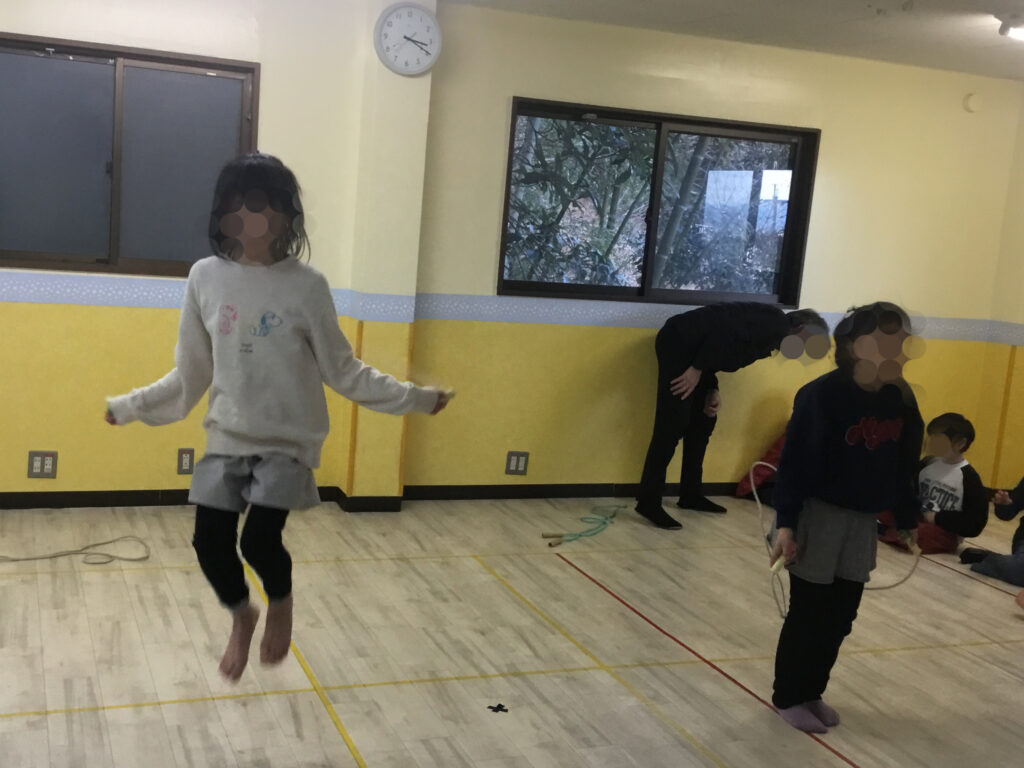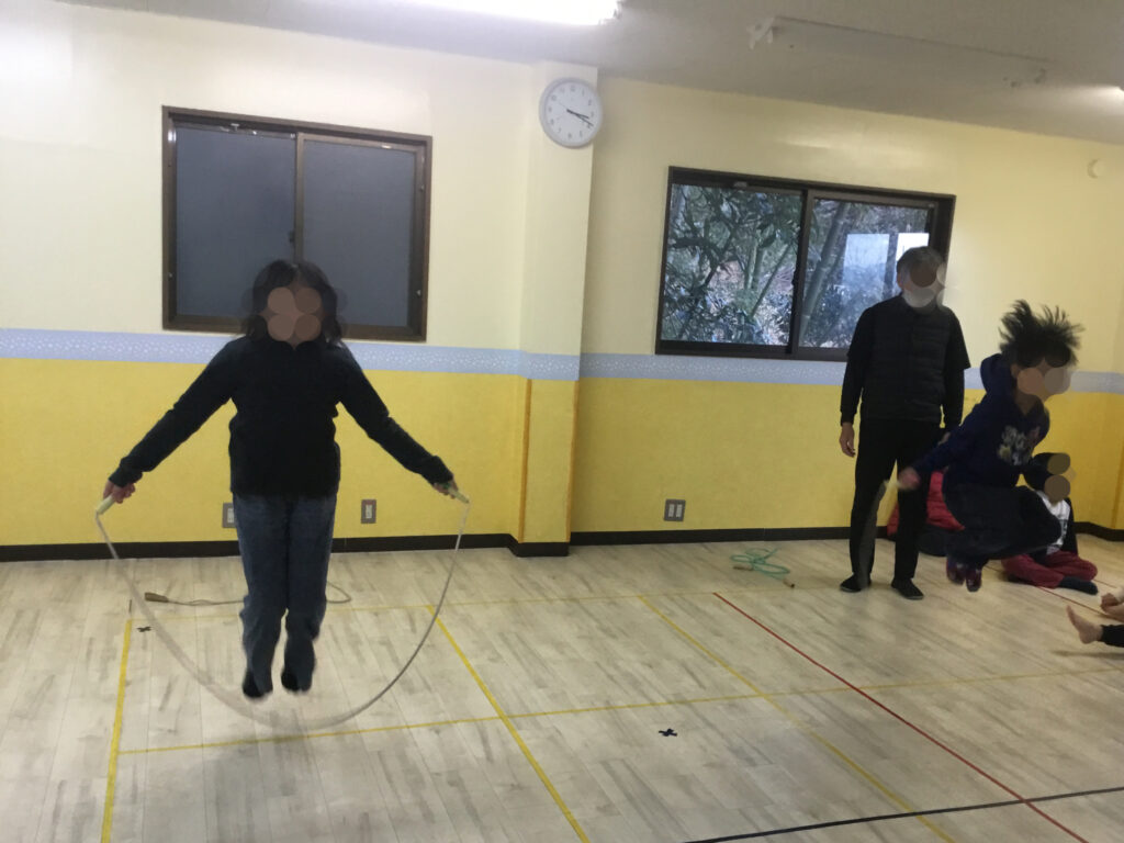 先週の運動プログラムの「Lets’ジャンピング」では、縄跳び、協力ジャンプ、走り幅跳び、棒ジャンプに取り組みました😊