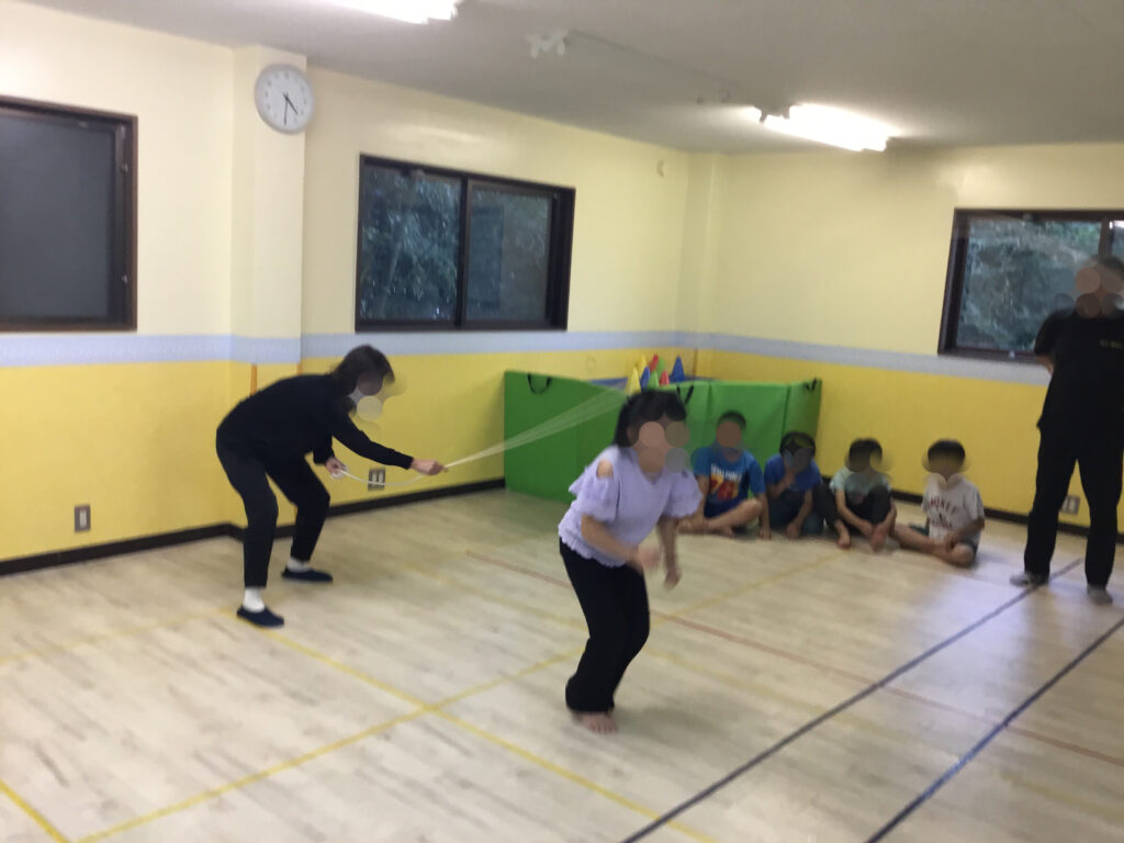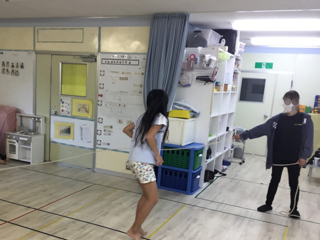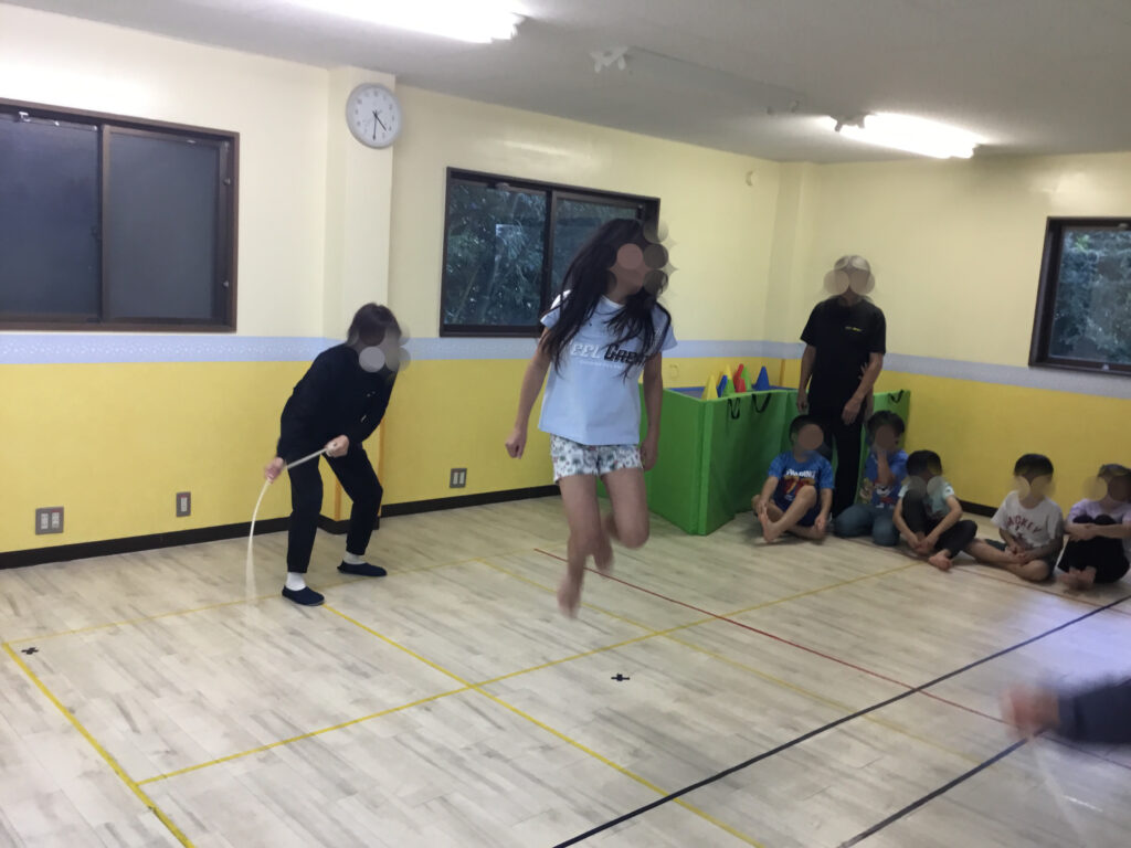 縄が近づくたびに少しドキドキしながらも、自分で決めた回数目指してチャレンジ!自分のペースで取り組み、一人ひとりが意欲的に取り組みました👍