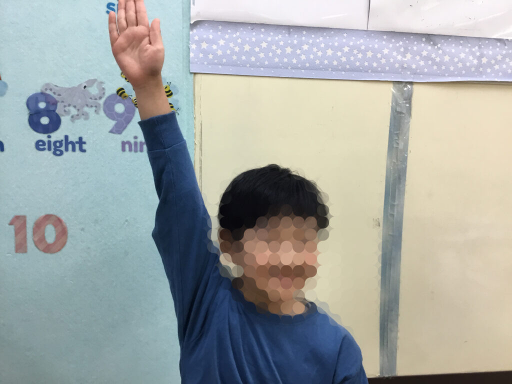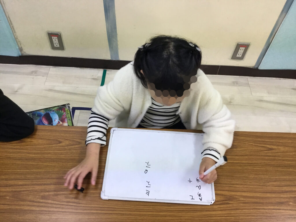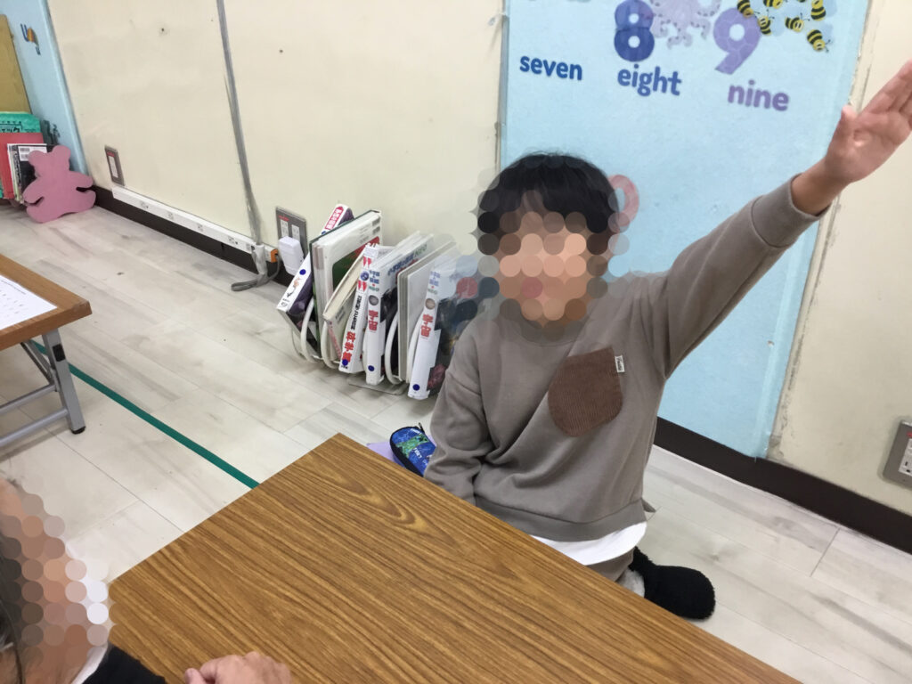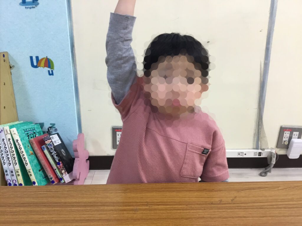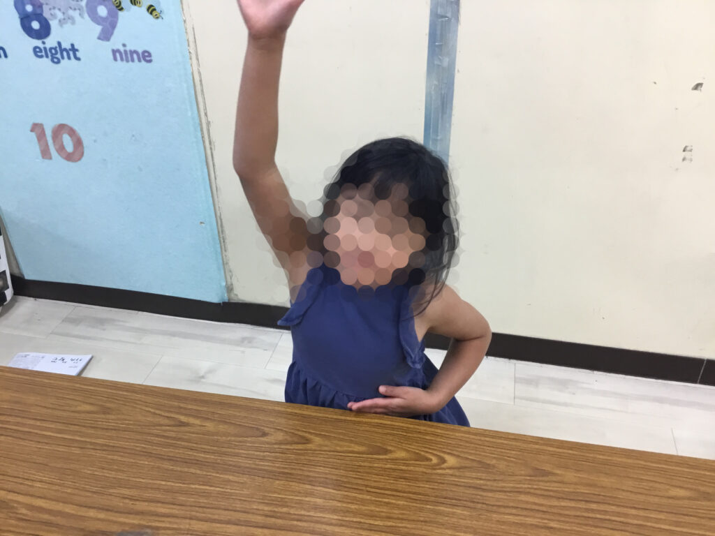 足を開いたり閉じたり、方向を変えたりと複雑な動きが続く中でも、リズムに合わせてステップを踏むことで、動きがだんだんとスムーズになり、ジャンプしながら前へ進む姿がとても生き生きとしていました。リズムをずらさないように集中しながらも、できた瞬間には嬉しそうに表情がほころび、達成感が伝わってきました。