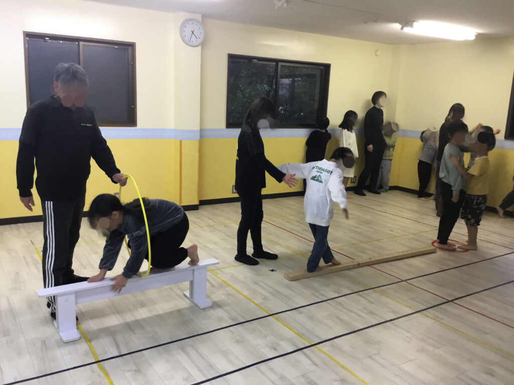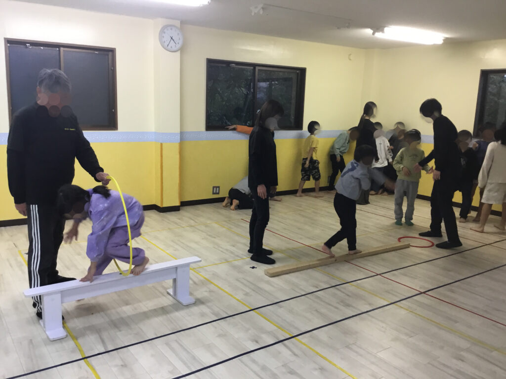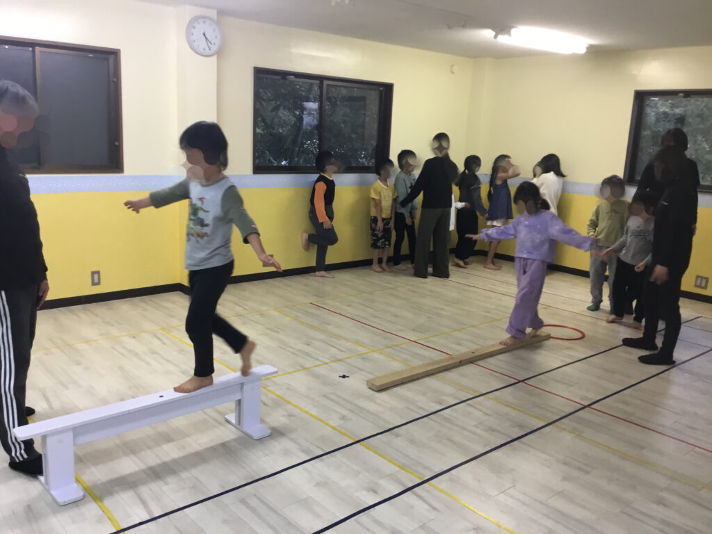 こうした活動を通して、バランス感覚の向上・体幹の安定・足先への意識づけ・姿勢のコントロール力・集中力の持続が自然と育まれています。高さが変化する中でも落ち着いて取り組む姿勢に、心の成長も感じられる時間となりました👍
