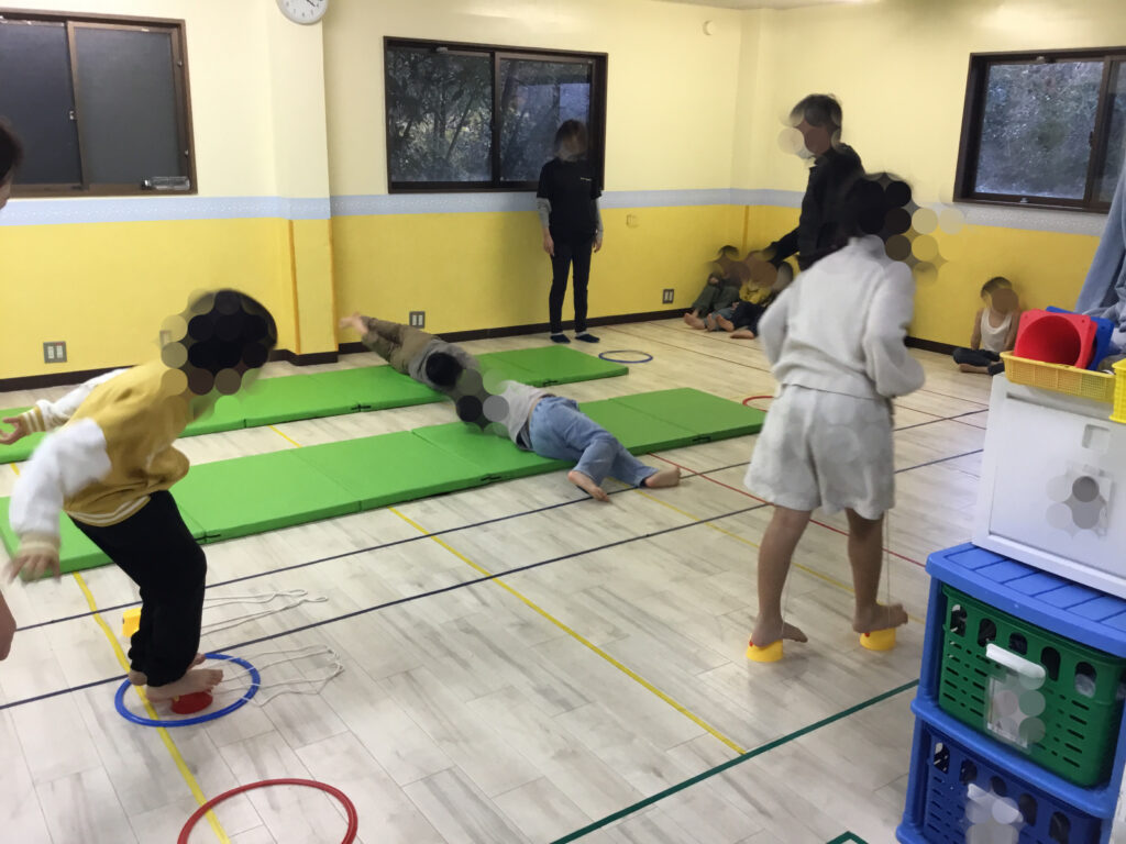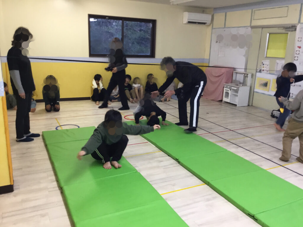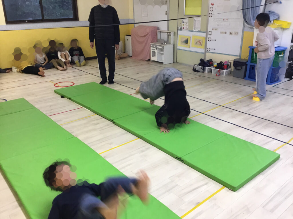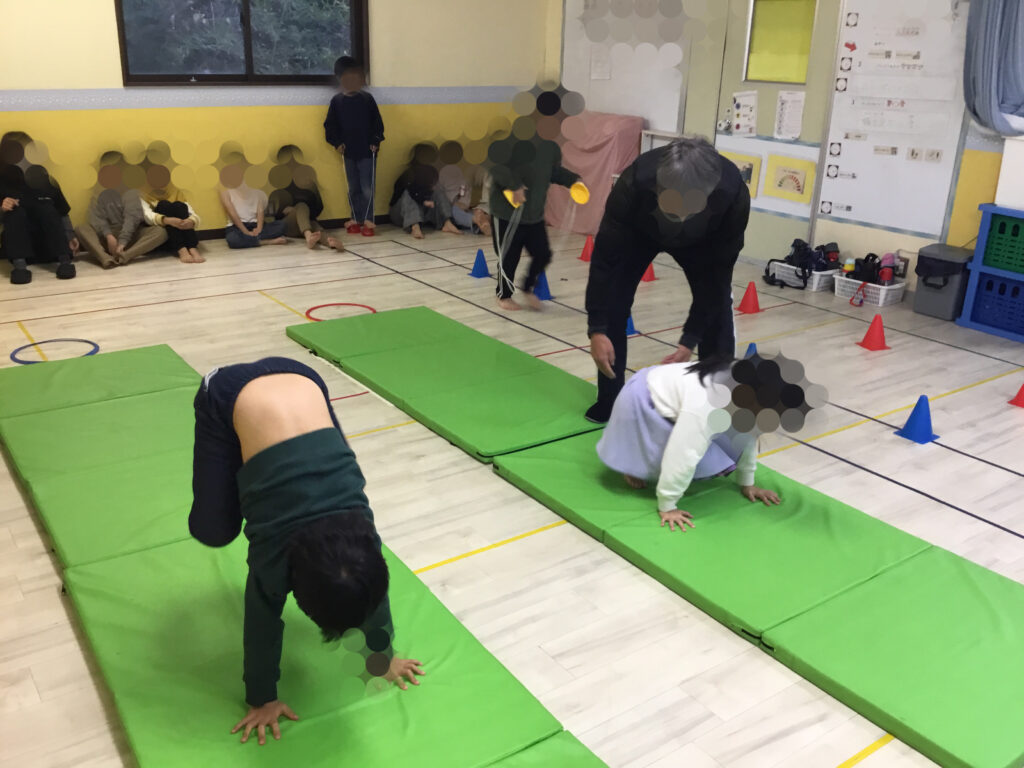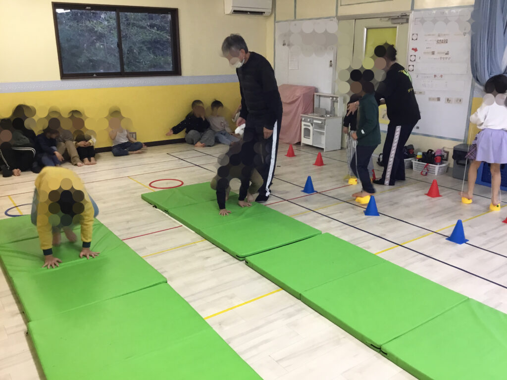 これらの活動を通して、全身を使った基本的な動きを身につけるとともに、挑戦する気持ちや達成感を味わうことができました。真剣な表情でマットとポックリに向かい、しっかりと取り組むことが出来ました💪